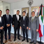 EL gobernador Ignacio Torres y el dirigente Andrés Fajardo (ambos en el centro de la foto), continuaron las negociaciones en la embajada de Kuwait en Argentina.